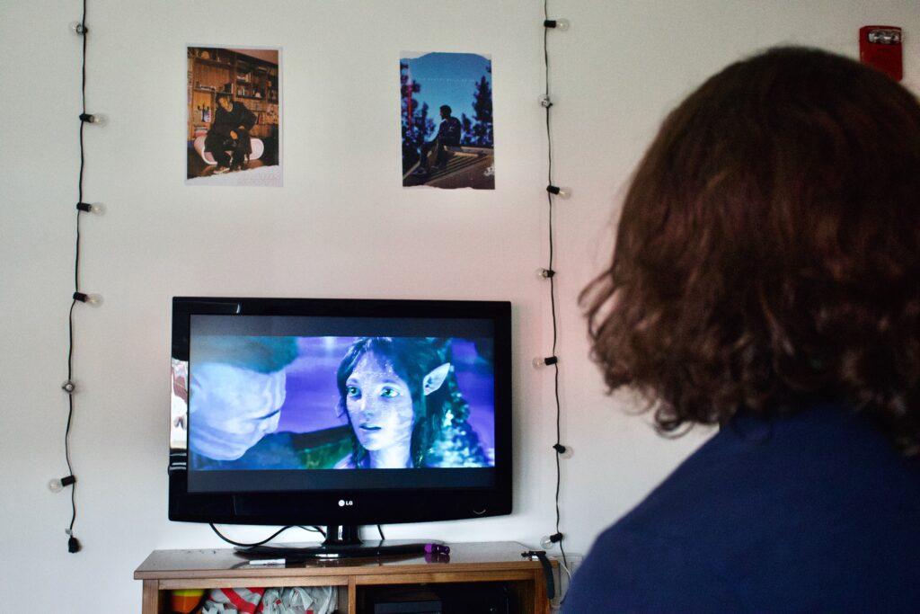 A SHU student pictured watching “Avatar: The Way of Water.”