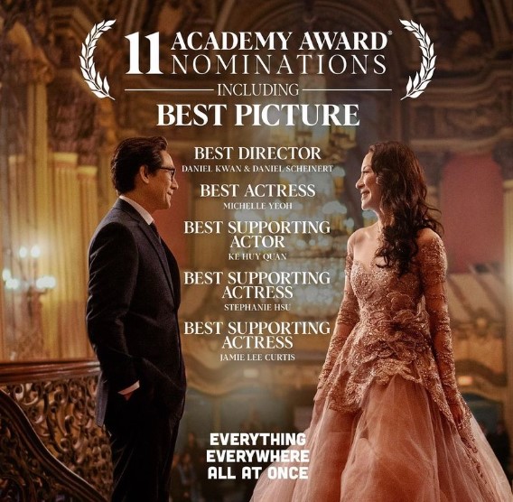 The sci-fi adventure movie “Everything Everywhere All at Once” is poised at the top of the nomination list with 11 nominations. According to the New York Times, the film also makes Academy history with lead actress Michelle Yeoh being the first Asian Best Actress nominee.