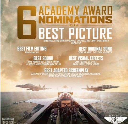 Best film nominee “Top Gun”. Source: instagram handle @topgunmovie