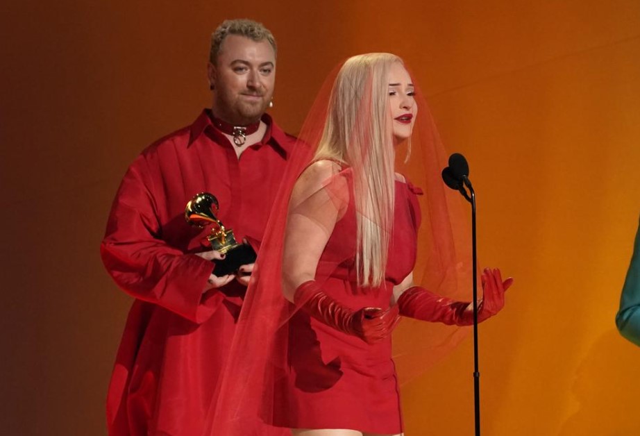 Kim Petras and Sam Smith accepting the award for best pop duo/group performance.