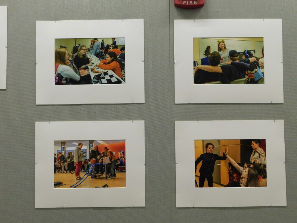 “The friendships I’ve made through the program have left a lasting impact on me. This experience has not only enhanced my college career but also instilled in me a stronger appreciation for inclusivity and the importance of advocacy in my life,” said senior Rowan Philpott , a member of Best Buddies, who is pictured in the exhibit.
