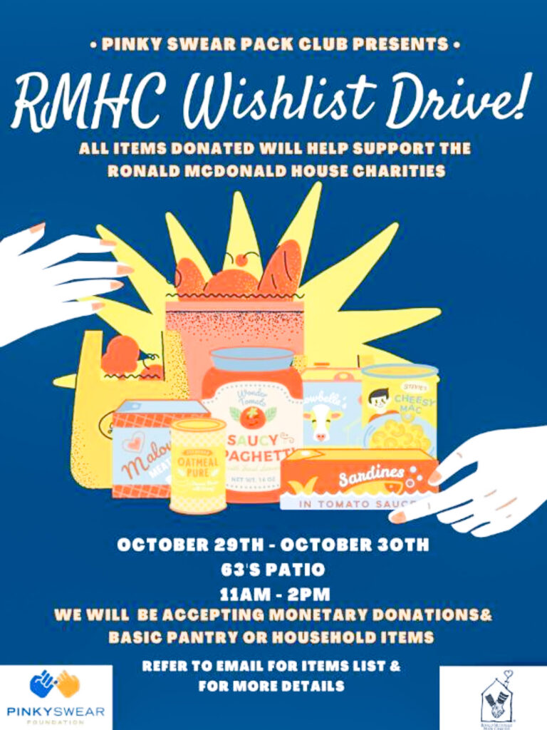 Pinky Swear PACK Club November 4, 2020 On Oct. 29 and Oct. 30, the Pinky Swear PACK Club intended to hold a Ronald McDonald House Charities (RMHC) Wishlist Drive on the…