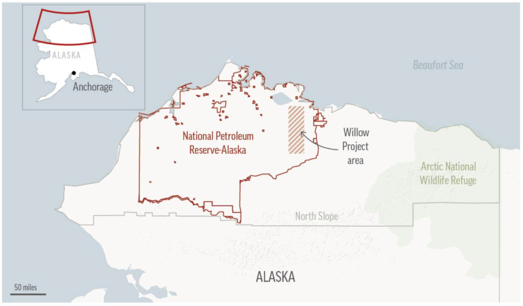 This map depicts the Willow oil-drilling project in Alaska, which the Biden administration approved.