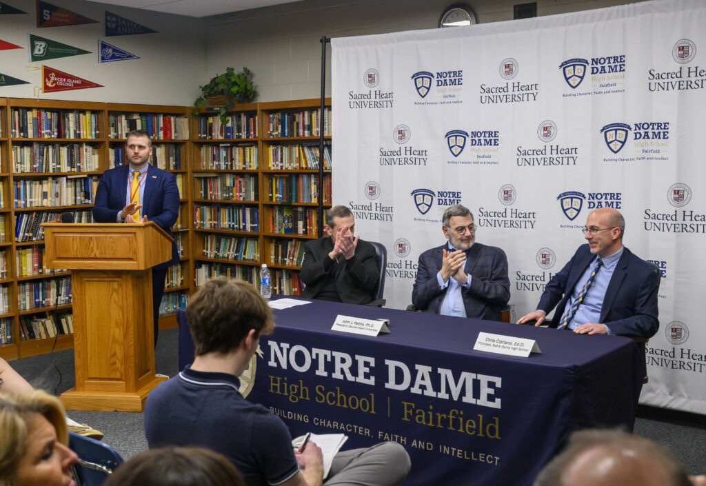 “As a representative of Sacred Heart’s admission office and an alum of Notre Dame High School, I’m excited to enhance our existing partnership,” said Assistant Vice President of Undergraduate Admissions Pamela Pillo. “Our collaboration will strengthen ties within the local community and provide exciting opportunities for both current and prospective Notre Dame students.”