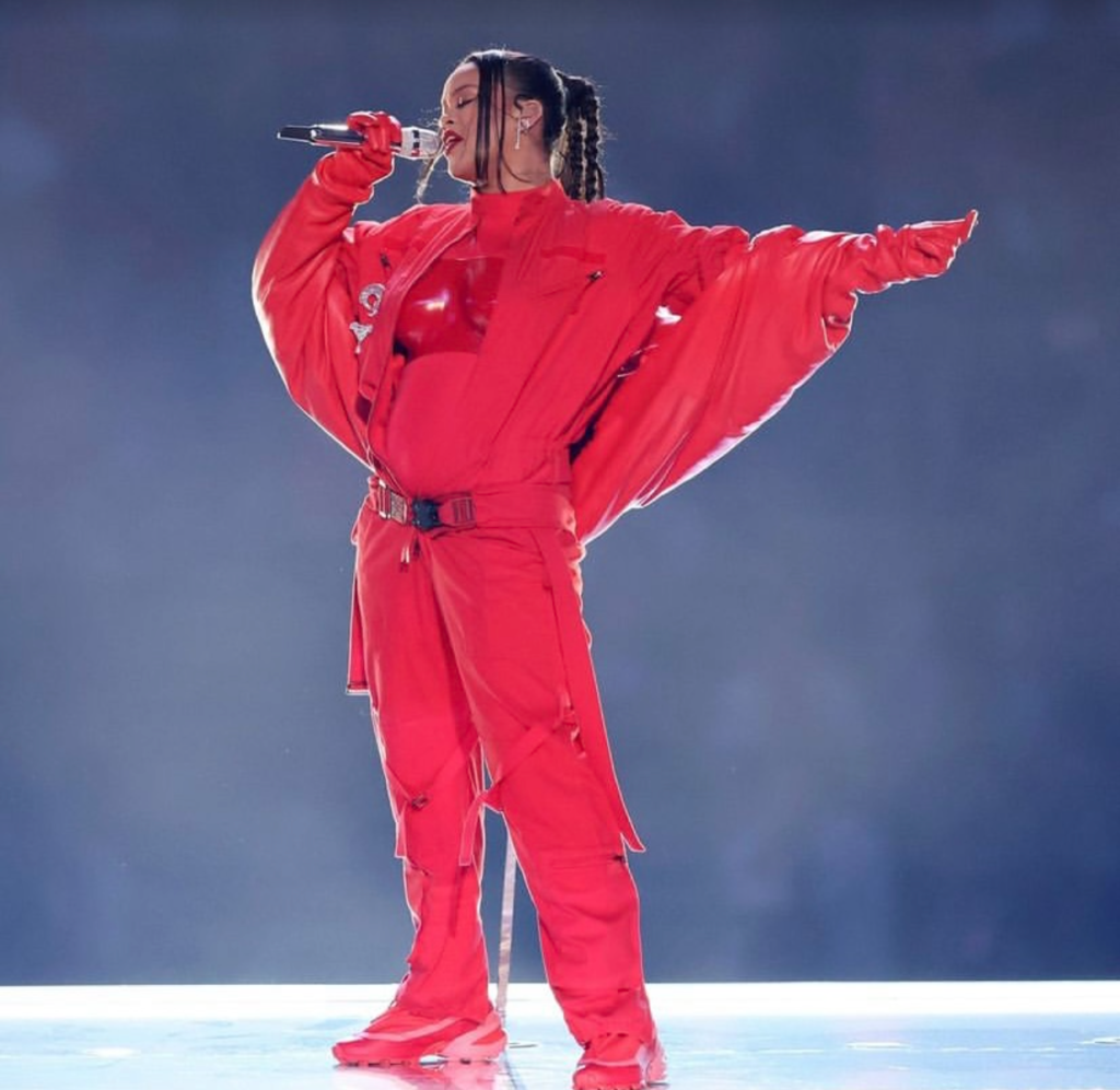 Performing at halftime was nine-time Grammy award winning artist Rihanna. Her first time headlining the Super Bowl, the iconic artist announced after her show that she had performed while pregnant with her second child.
