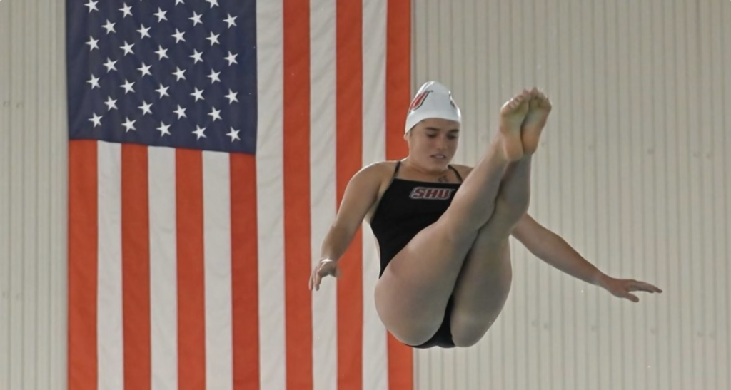 The SHU women’s swimming and diving team is currently competing in their dual meets schedule. The team practices at the New Canaan YMCA facility, in New Canaan, CT.